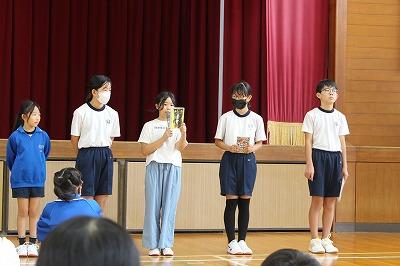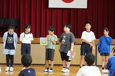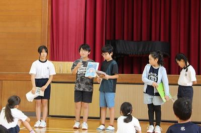 全校のみんなに絵本を紹介しました。