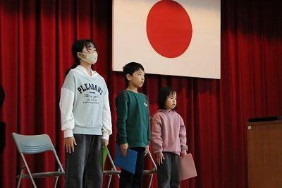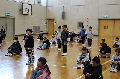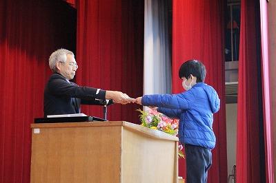 1月27日朝会。なわとび大会入賞者の表彰を行いました。