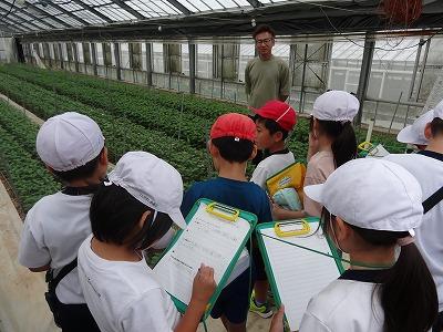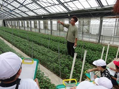 10月7日 3年生が地域の方の菊栽培の温室を見学しました。