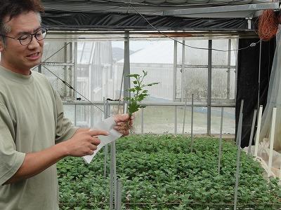 菊の育て方や害虫駆除で消毒をする方法を聞きました。消毒は、手間はかかるけど手作業で行っているそうです。理由は、葉の裏まで薬剤は着くように、1本1本丁寧にできるからだそうです。