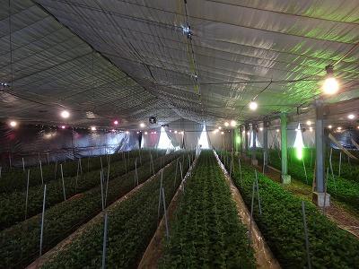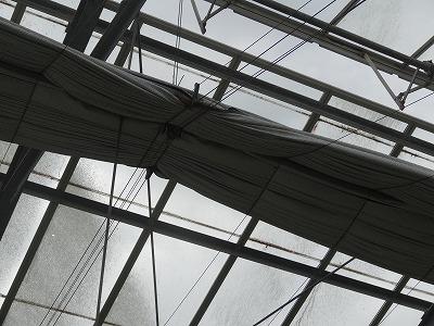 温室の天井の窓を開閉して換気する装置や天井を特別のシートで覆って温室を暗くする装置を見ました。