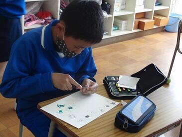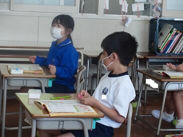 1年生の算数です。数字と数について、算数セットのおはじきを使って勉強していました。