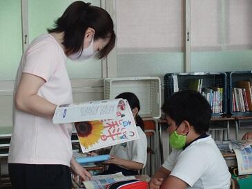 2年生は、図工室で「どうぶつといっしょ」というテーマで絵を描き始めています。