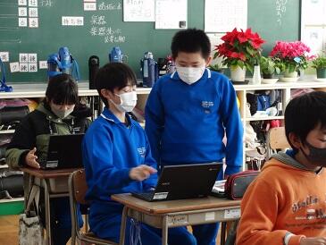 個人用パソコンが配付されて、いろいろな教科で手軽に活用できます。これからも大いに活用していきます。
