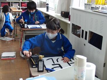 ↓書けた子から先生にみてもらいます。ちなみに書写の授業は、教頭先生が受けもっています。